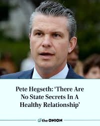 The Onion understands Pete’s tragicomedy status as the least capable or qualified military leader in history